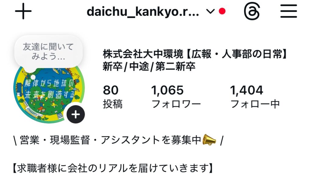 さて今回は、『Instagramの運用』についてブログを投稿しようと思います。弊社がInstagramを運用している理由は、会社の認知度を高めて採用に繋げる為です。Instagramを運用する上で意識していることは、会社のリアルを求職者様に伝えることです。コンセプトとして設定しています。